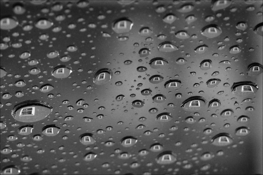 It’s a close-up of raindrops on a car windshield. Car was parked in front of a building and you can see a window from the building refracted in the raindrops. LikeLike Reply